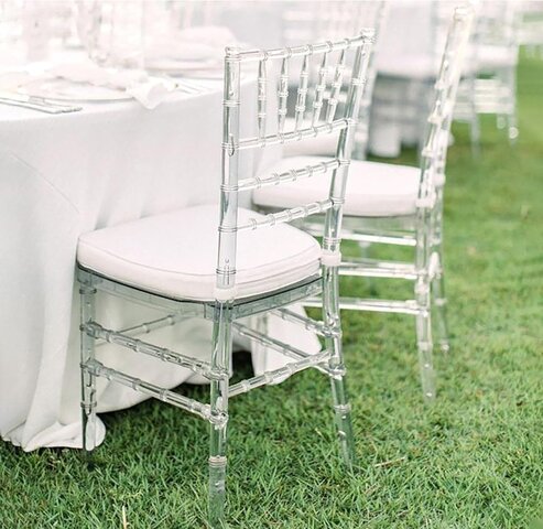 Their transparent design adds a touch of luxury while seamlessly blending into any décor, allowing your colors, florals, and overall vision to truly stand out. Whether you're going for a classic, romantic feel or a sleek, contemporary vibe, our clear Chiavari chairs are guaranteed to impress your guests.